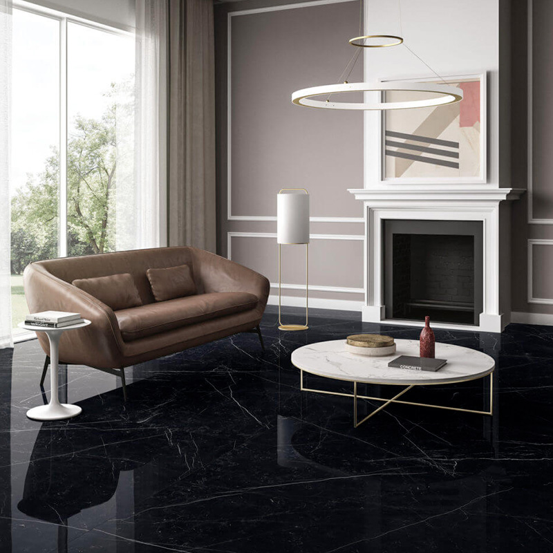 This brilliant granite finds its inspiration from the textures found on a painter's canvas. It has an intense black base with strokes of white and grey. It will be best suited for large spaces like living rooms, entrance lobbies & outdoor spaces. It can also be used in bathrooms & dining areas & the flooring with galaxy black look even more spectacular under the warm lights of chandeliers. The galaxy black granite floors look extraordinary and luxurious.