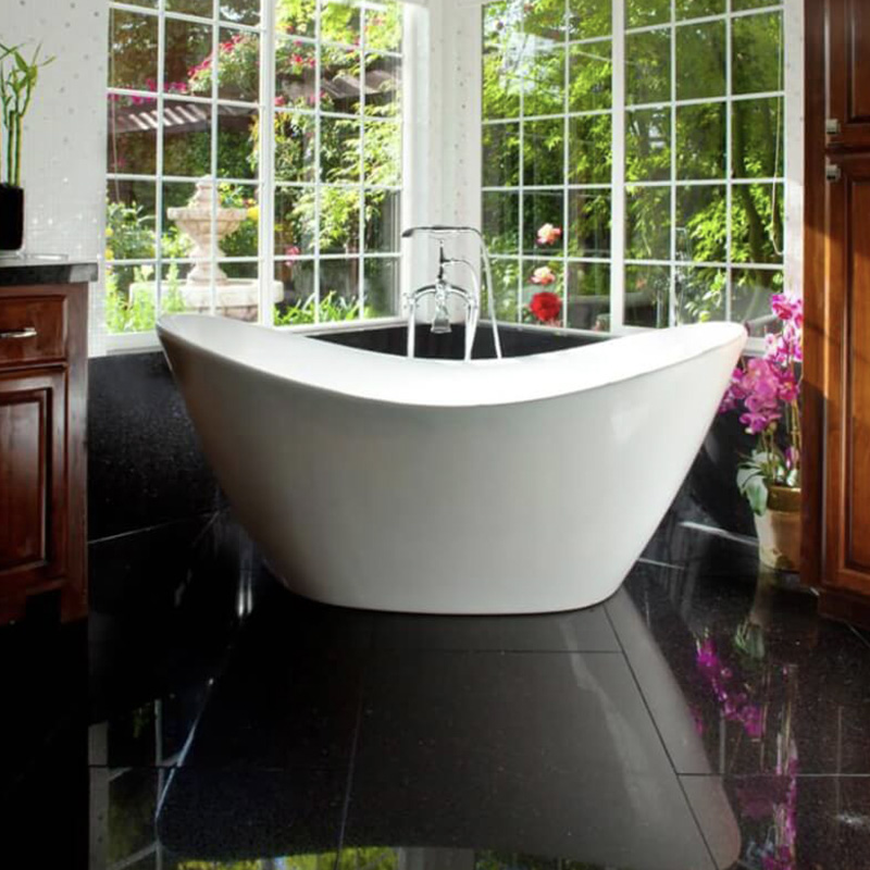 Granite is particularly resistant to moisture when sealed properly, so it may be utilized on wet spaces like the bathroom or kitchen floors without any concern. It is also easy to maintain, so simple sweeping & mopping will be sufficient to keep your granite floors intact.