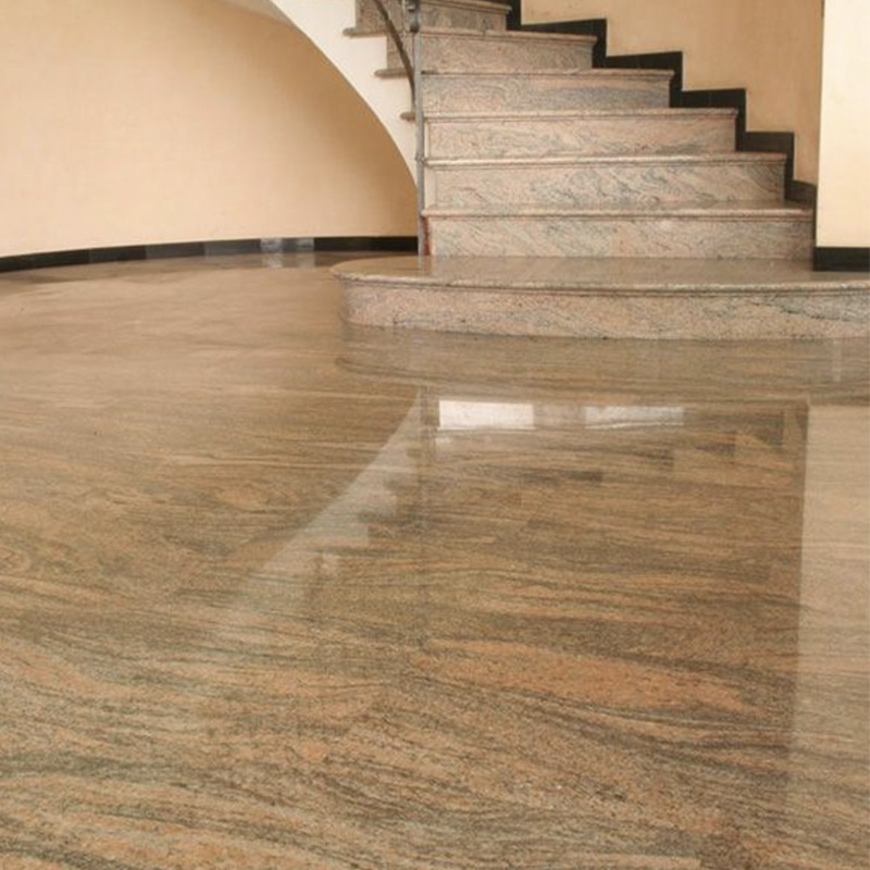 This trendy granite has the most exquisite textures similar to the stripes on a tiger skin. It has a pastel warm base of light brown colour & is textured with black-brown lines. Tiger skin granite floors for spaces such as living rooms, dining areas, lobbies, foyers, and balconies will have a unique look & feel. The spaces will make you feel warm, comforting and uber luxurious.